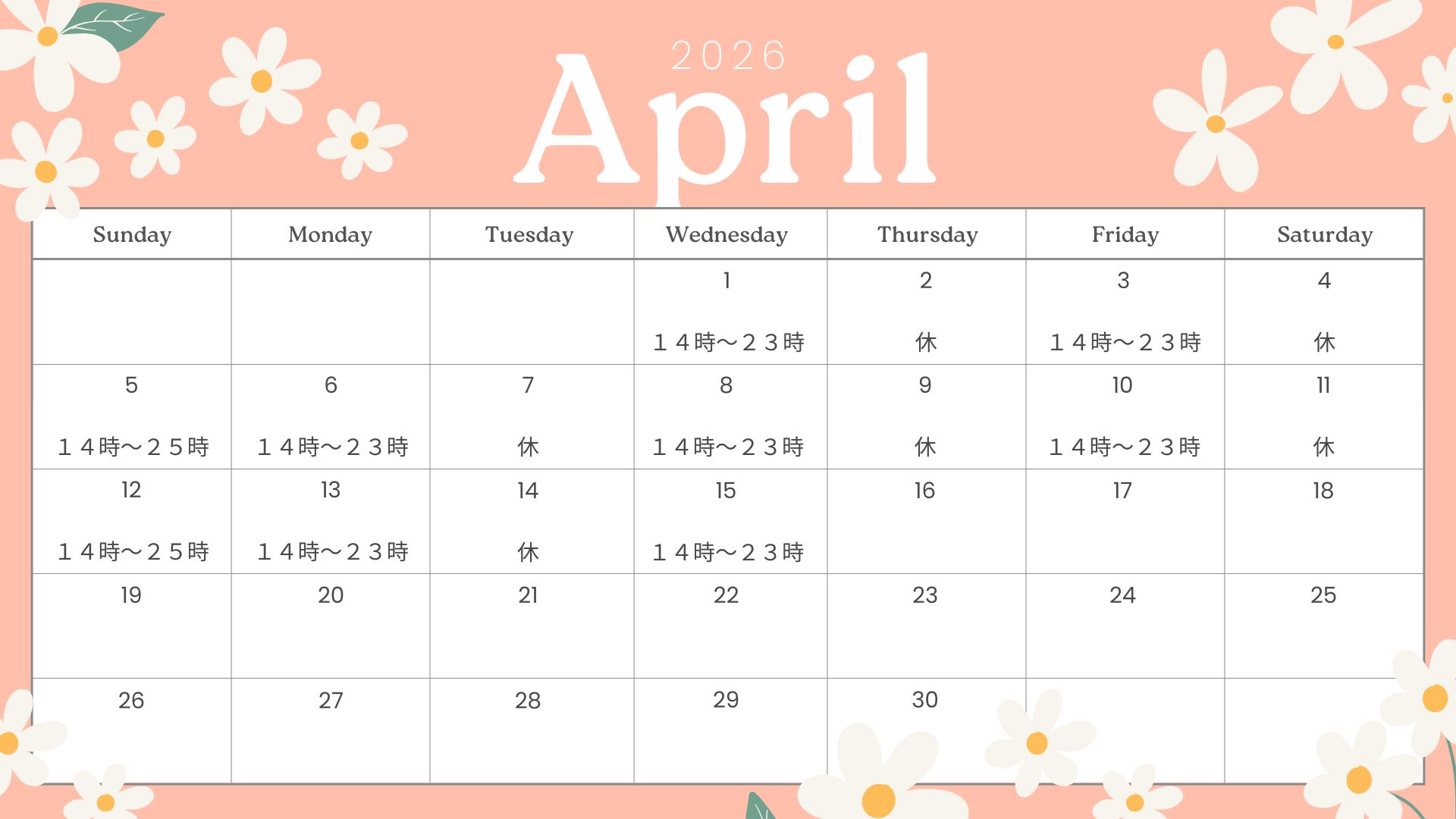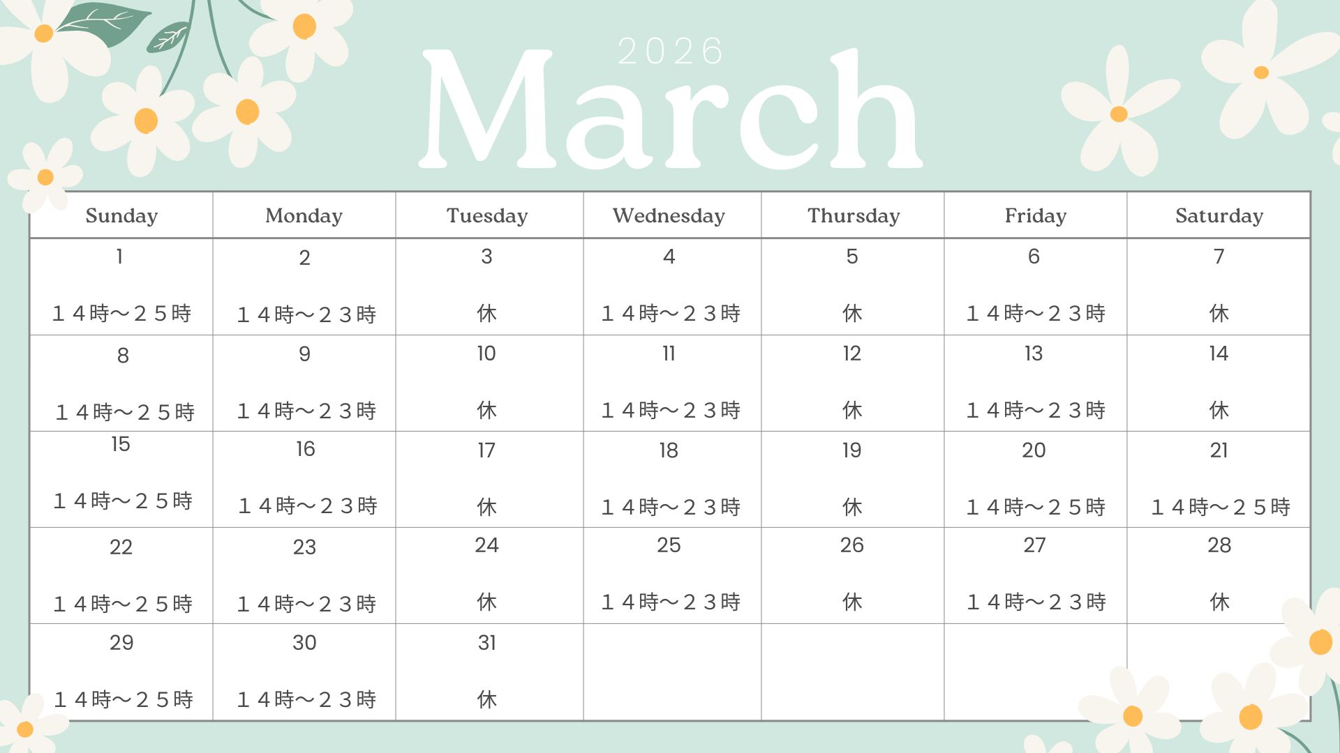 (月によって特別稼働日になる場合有)